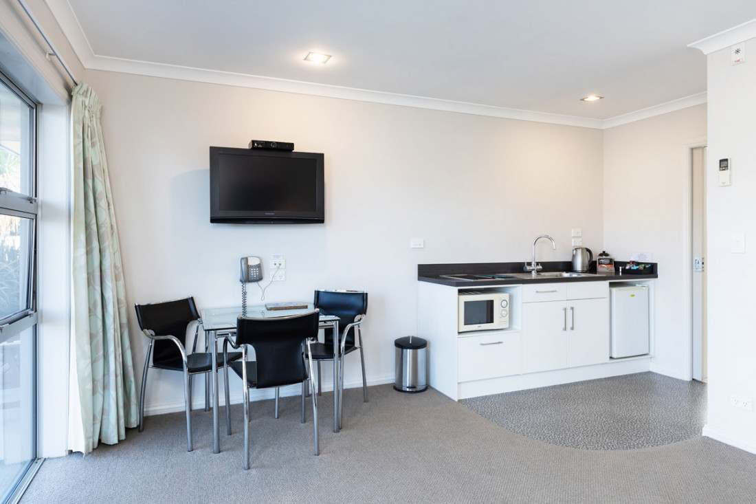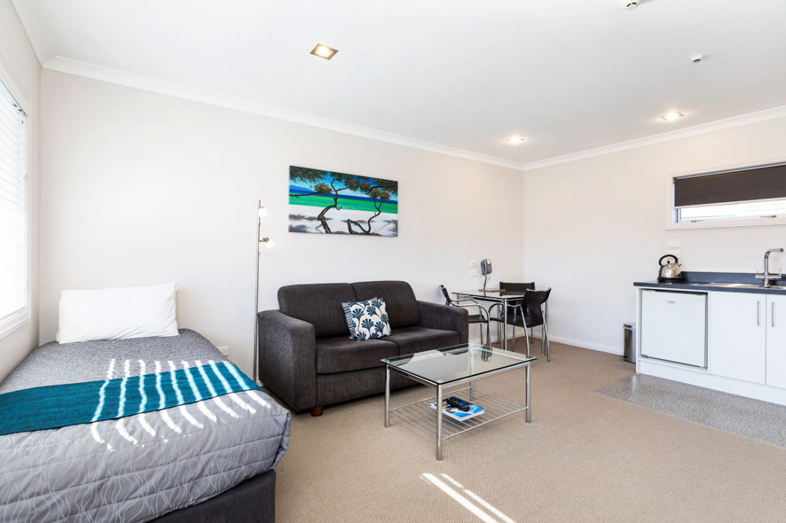 Stay in luxury in a modern and spacious one bedroom deluxe room. The light and airy bedroom features a king size bed and a king single with rollaway in the lounge. The room is beautifully furnished with modern seating, dining table and chairs. Smart TV's with the ability to stream your favourite programmes. Relax in the the air-bath in the spacious, fully tiled bathroom. The stylish, modern kitchen is well equipped with a microwave, dual hob and oven plus extras such as filtered drinking water and plunger coffee. Treat your partner to a special weekend away or rest and recover in luxury on your business trip to New Plymouth.